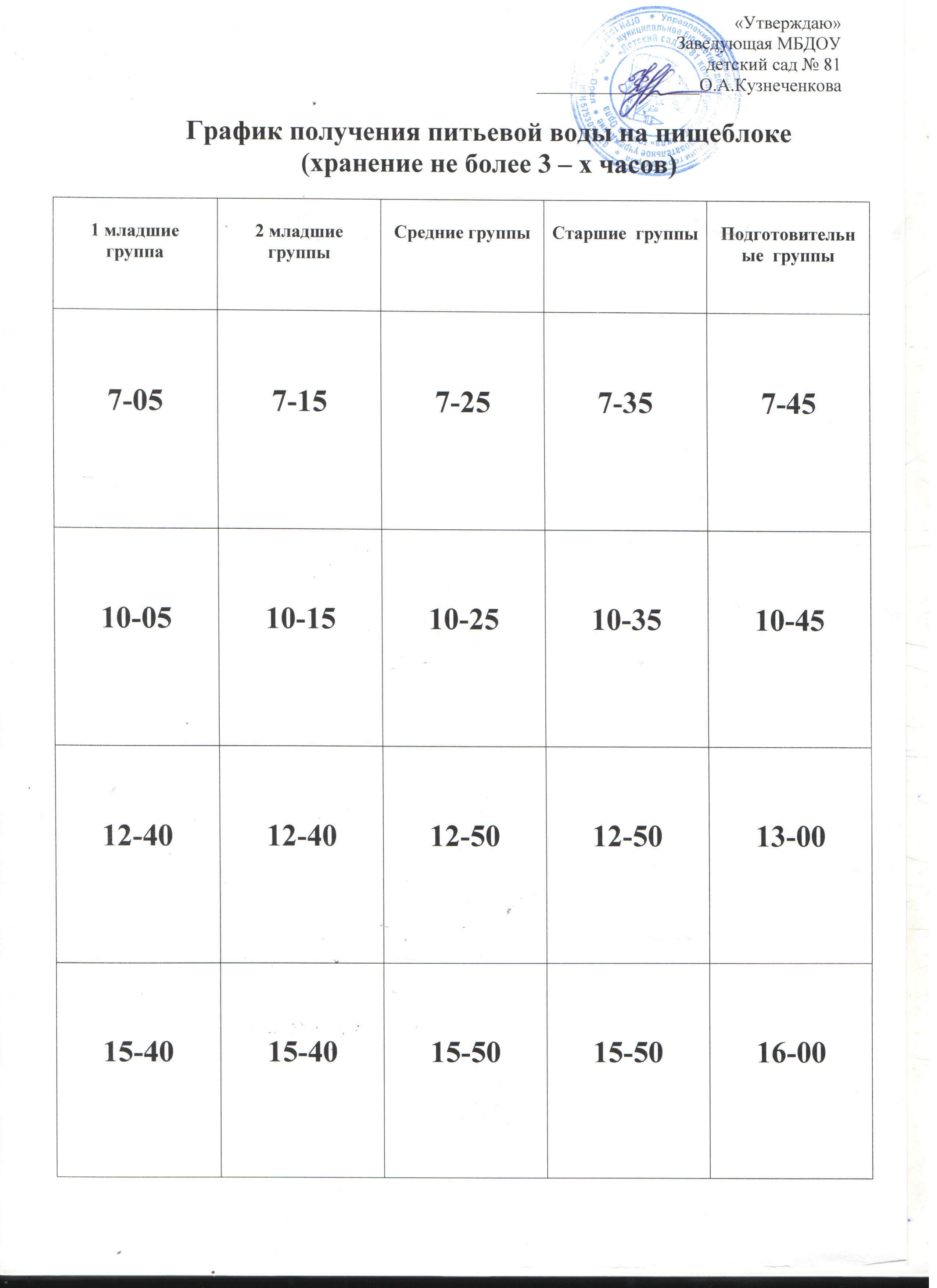 График выдачи кипяченой воды с пищеблока.