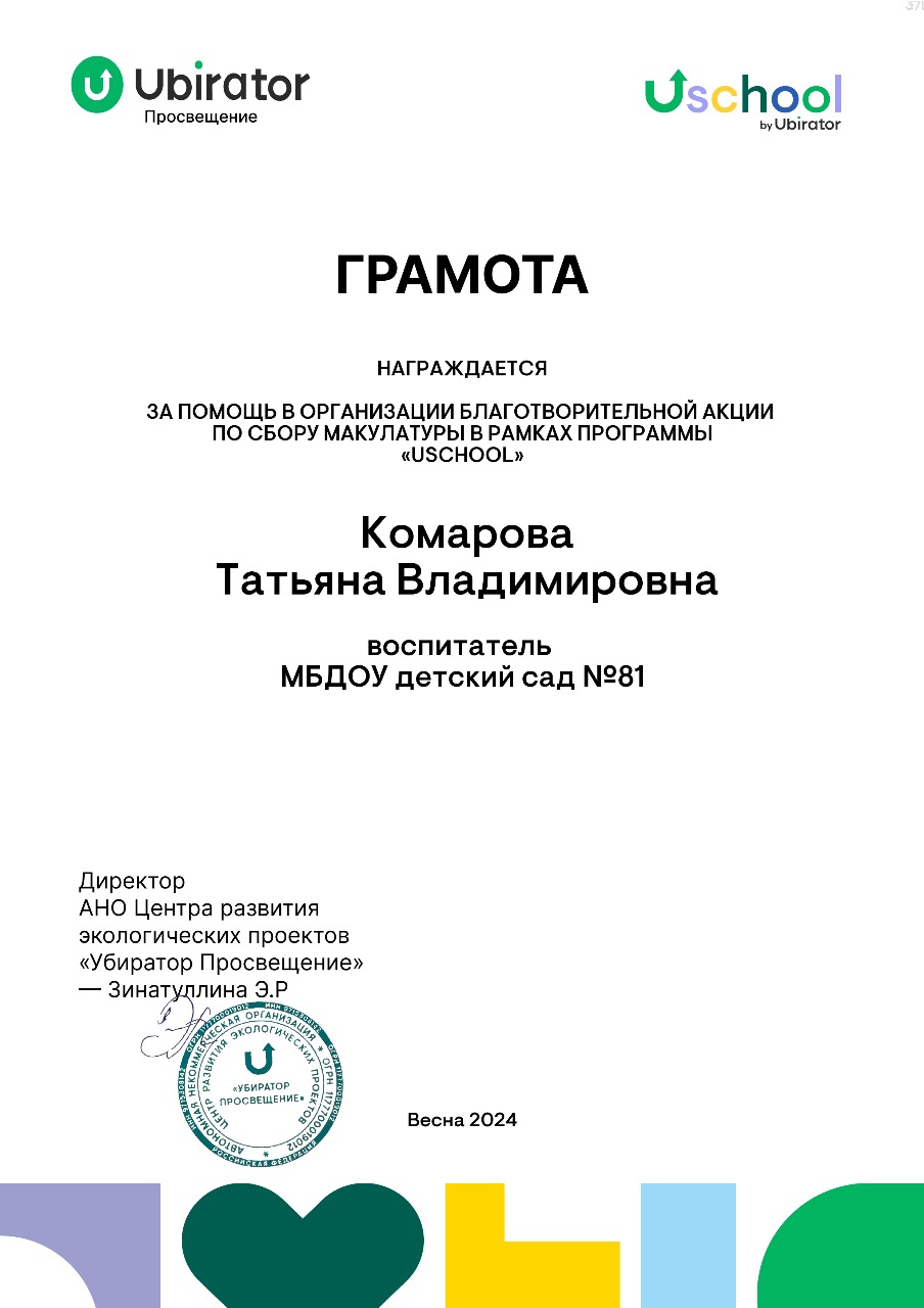 Член ВОО «Воспитатели России» Участник движения «Исследователь» |